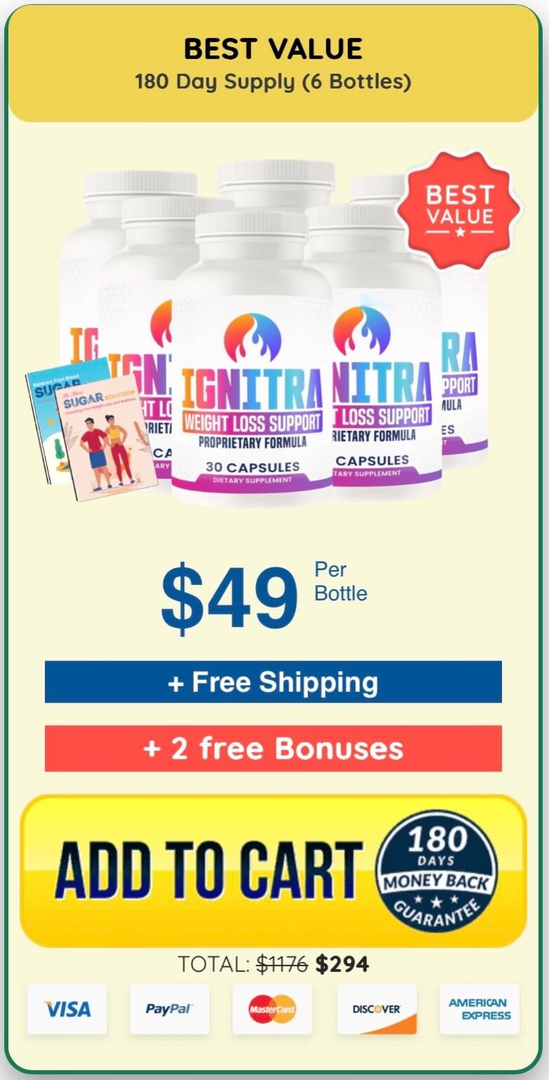 We’re confident that Ignitra will give you the powerful support you need to help support a healthy metabolism, that’s why every single bottle of Ignitra comes with our personal 180 day 100% money back guarantee.